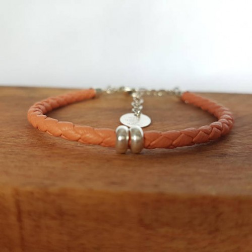Ce bracelet pour femme vous est proposé en cuir tressé à choisir parmi 3 coloris de saison, de l'orange, du rose et un marron clair. Un bracelet délicat pour un joli effet minimal chic.
